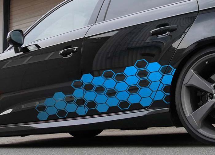 Designový polep FOLIATEC – motiv HEXAGON dodá vašemu vozu moderní a technický vzhled. Samolepky jsou vyrobeny z vysoce odolné exteriérové fólie, snadno se instalují a vydrží i náročné podmínky.