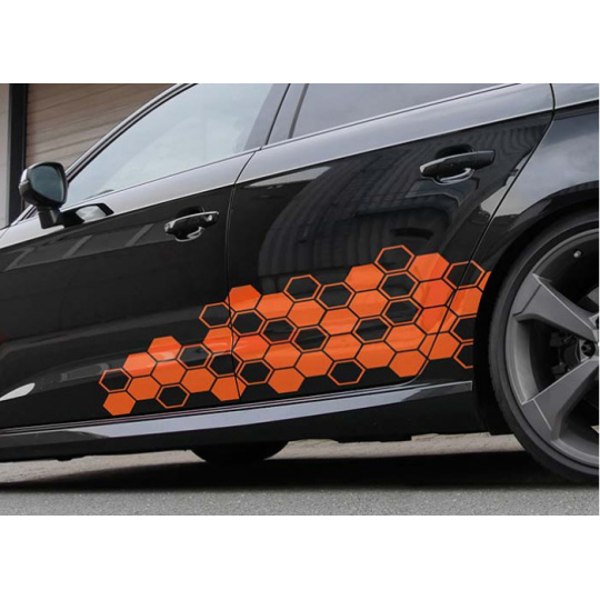 Designový polep FOLIATEC – motiv HEXAGON dodá vašemu vozu moderní a technický vzhled. Samolepky jsou vyrobeny z vysoce odolné exteriérové fólie, snadno se instalují a vydrží i náročné podmínky.