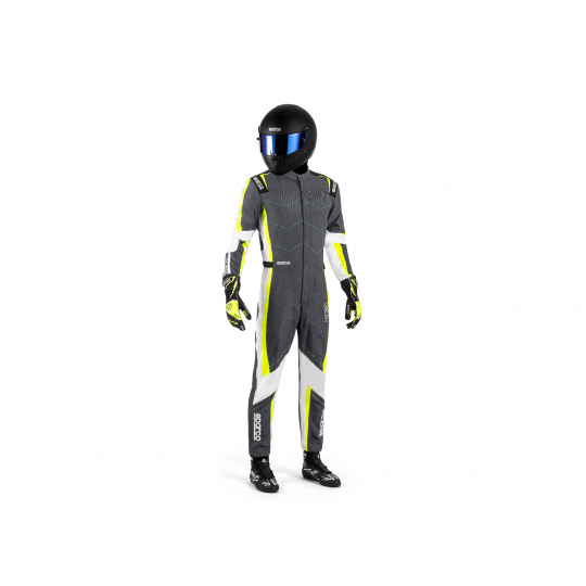 Dětská kartingová kombinéza Sparco KERB, s homologací FIA, barva: šedo-žlutá, velikost: 130