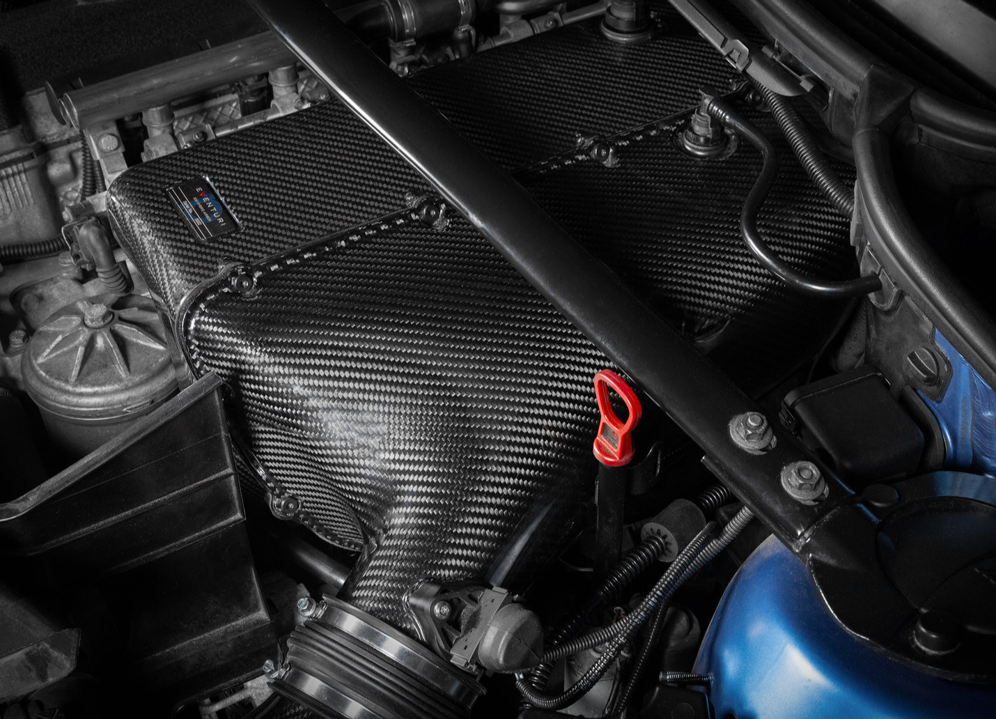 Hybridní airbox Eventuri pro E46 M3 je k dispozici ve dvou konfiguracích – se sáním a bez něj. Verze bez sání je určena zákazníkům, kteří již sání Eventuri ve svém voze mají. V takovém případě se sání pouze doplní o nový karbonový airbox. Hybridní airbox Eventuri pro BMW E46 M3 se skládá z řady komponentů navržených pro plnění konkrétních funkcí a vyrobených podle nejvyšších standardů. Níže najdete podrobnosti o jednotlivých komponentách a filozofii jejich návrhu: