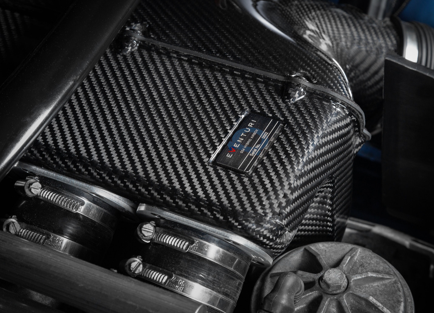 Sací airbox se skládá ze vzduchového filtru 2. generace, držáku z nerezové oceli a vnějšího obalu z prepreg karbonu. Filtr je v airboxu umístěn obráceně tak, aby vnitřní stranou nasával čerstvý vzduch a z vnější strany pak plnil samotný airbox, který slouží pro vedení vzduchu dál do sání. To je hlavním designovým znamením patentovaných sání Eventuri. K redukci z velkého průměru v místě vzduchového filtru do relativně malého průměru vedení za filtrem díky tomu nedochází skokově na malé vzdálenosti, ale je pro ni využívána celá délka airboxu. Takto vedený vzduch také dosahuje oblasti s MAF senzorem zcela hladce bez narušení proudění a sání tak pracuje bez chybových hlášení.