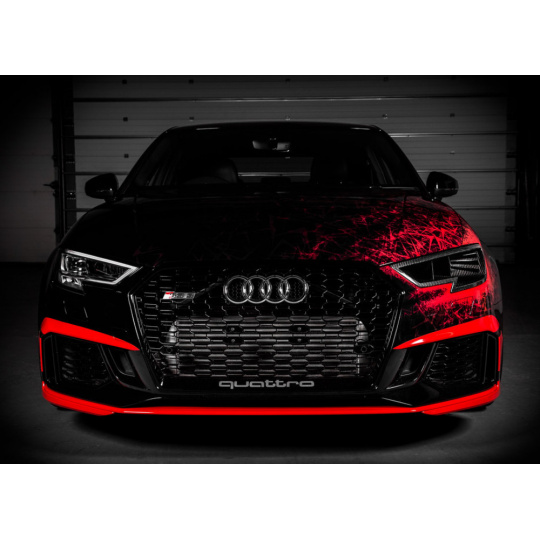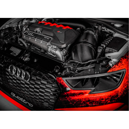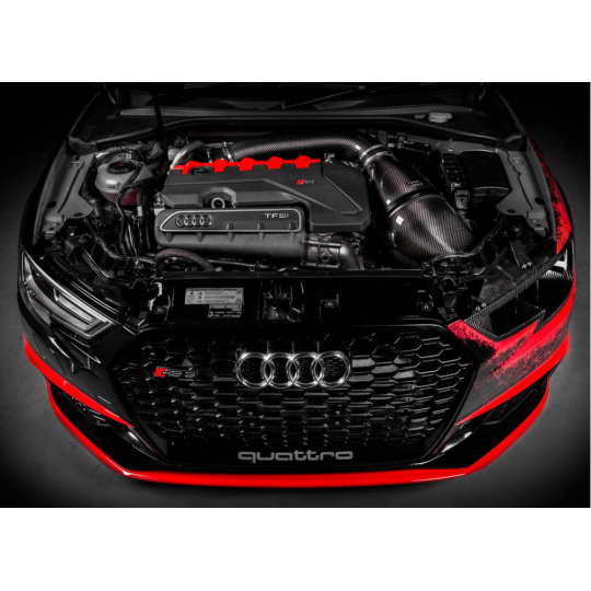 S tím, jak si Audi RS3 získává stále silnější pozici mezi vozy soutěžícími na okruhu nebo sprintovacích drahách, rozhodli jsme se posunout možnosti tohoto vozu ještě dále. Eventuri náhrada světlometu plně nahrazuje originální díl a přímo navazuje na airbox sání Eventuri. Zároveň obsahuje dvojité žebrování, které směruje nasávaný vzduchu přímo do sání. Instalací nasávání skrz náhradu světlometu je také odstraněn originální nasávač za maskou chladiče. Tento prostor je tak nyní zcela využíván pro přímé chlazení motoru.