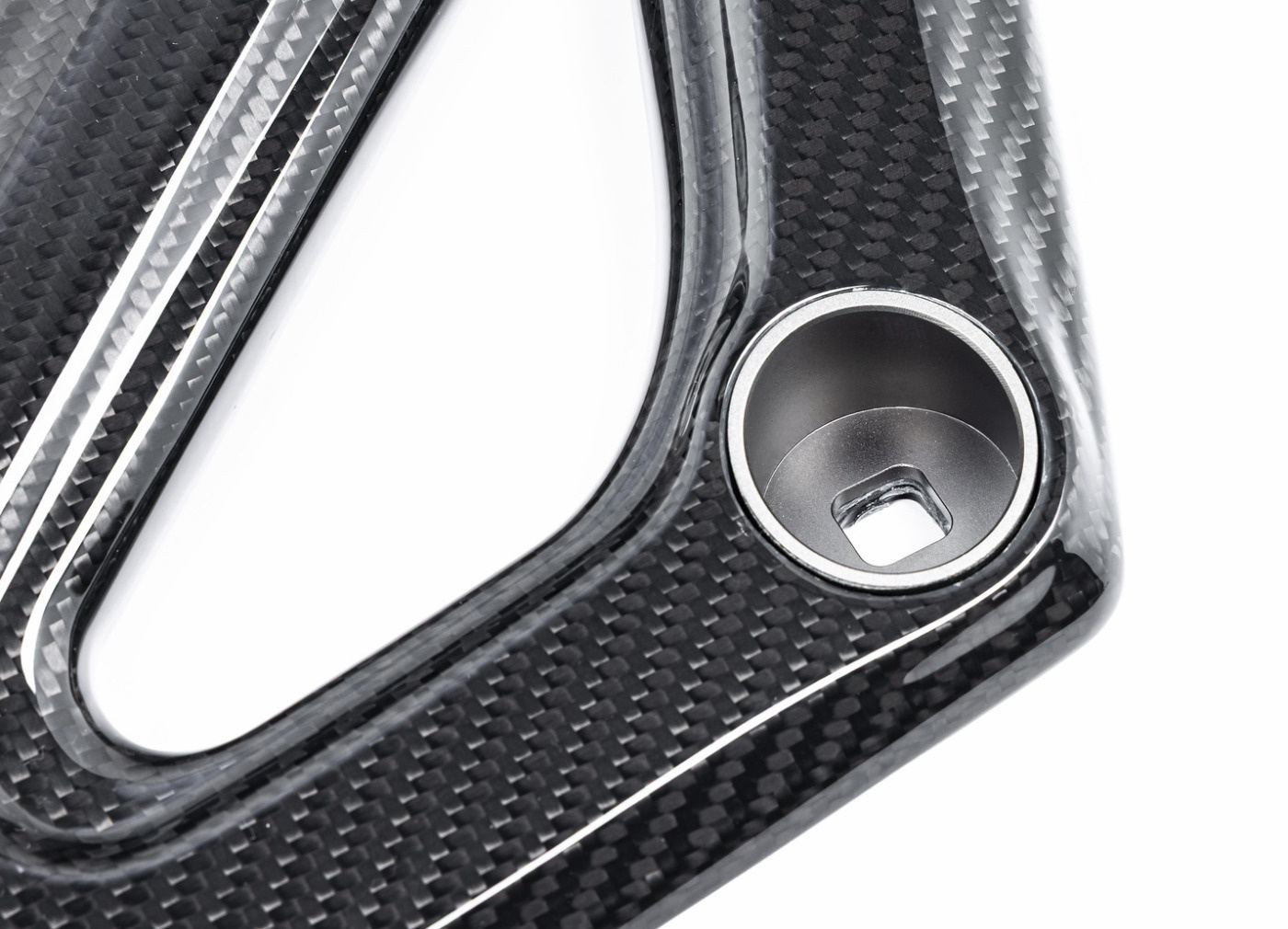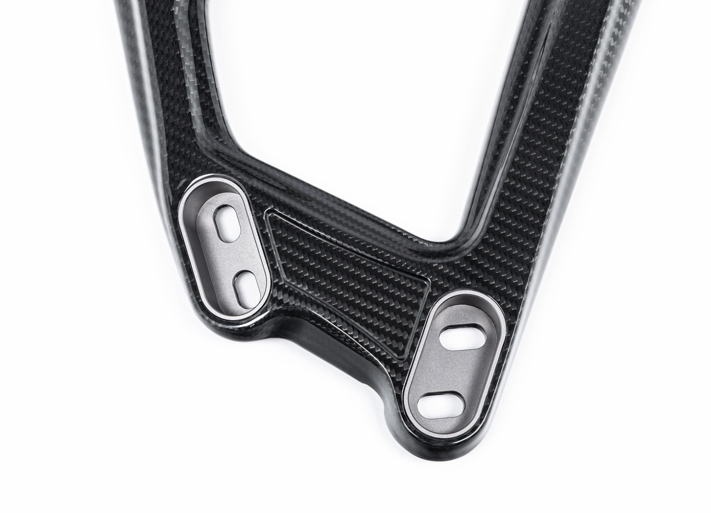 Rozpěra je tvořena vyvýšenými křivkami, které plynule přechází v drážky, které rozpěru opticky zlehčují a umocňují dokonale organický design. Montážní body jsou umístěny v hlubokých vybráních vyztužených ocelovými vložkami se saténovým povrchem, který dokonale kontrastuje s karbonem.