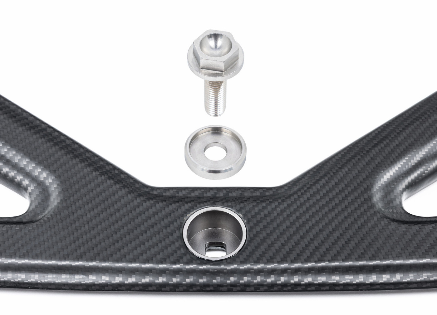 Místa pro uchycení mají v sobě vsazené kovová pouzdra vyrobena pomocí CNC, do kterých dokonale pasují šrouby s podložkami z nerezové oceli, které jsou součástí balení. Tento vlastní spojovací materiál je kompletně vyroben z nerezové oceli 316 a je cíleně dodáván v surovém opracovaném stavu, aby podtrhl smysl pro detail při vývoji rozpěry Eventuri.
