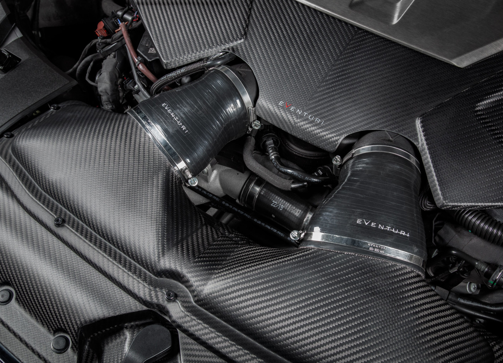 První cíl byl splněn celkovým zvětšením airboxu, který zcela naplňuje prostorové možnosti pod kapotou vozu. Právě kapota vozu je v tomto případě u továrního airboxu nejvíce limitujícím prvkem. Tovární vzduchový filtr se zjednodušeným tvarem je nahrazen zcela unikátním filtrem vyrobeným italským specialistou BMC dle přesných požadavků Eventuri. I výstupy z airboxu k turbodmychadlům byly zvětšeny a to konkrétně o celých 85% oproti originálu.