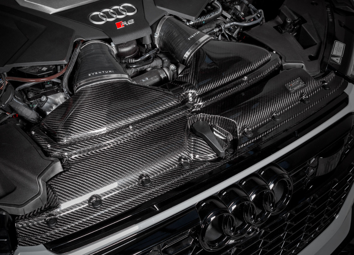 Kompletní karbonové sání Eventuri pro Audi RS6 / RS7 tvoří špičkový funkční celek umožňující turbodmychadlům dosáhnout maximálního plnicího tlaku výrazně dříve než v případě kompromisního továrního airboxu. Motor díky tomu dokáže vydat maximální výkon při nižších otáčkách. V případě vozů, které měli softwarově upravenou řídicí jednotku, je nárůst výkonu a nástup turbodmychadel ještě znatelnější. V takových případech navíc roste požadavek na co nejpřímější vedení vzduchu bez nežádoucích restrikcí, který narozdíl od Eventuri, nedokáže tovární airbox naplnit.