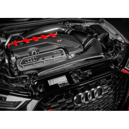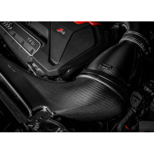 Kompletní airbox sání Eventuri pro Audi TT RS se skládá z vysoce výkonného vzduchového filtru umístěného v karbonovém pouzdru s patentovaným tvarem, které je opatřeno laserem řezanými kovovými držáky. Samotný tvar airboxu zajišťuje hladké laminární proudění přímo k turbodmychadlu bez nežádoucích restrikcí nebo víření.