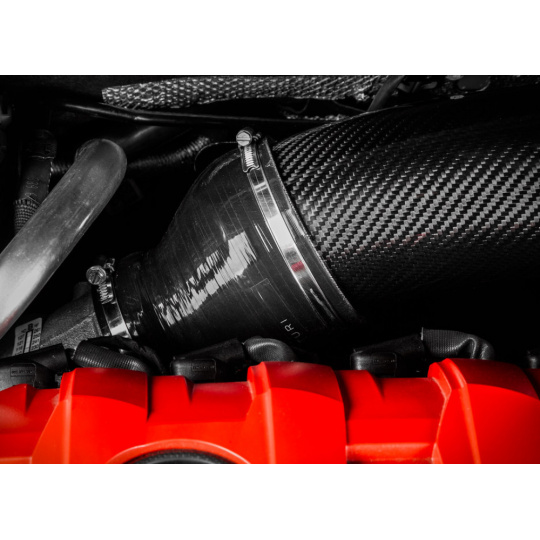 Trubice pro vedení vzduchu od filtru k turbodmychadlu je vyrobena ze 100% prepreg karbonu se zcela hladkým vnitřním povrchem. Vnitřní průměr této trubice je u sání Eventuri celých 103 mm a bez jakýchkoliv restrikcí a ztráty tlaku vede vzduch od filtru do turbodmychadla.