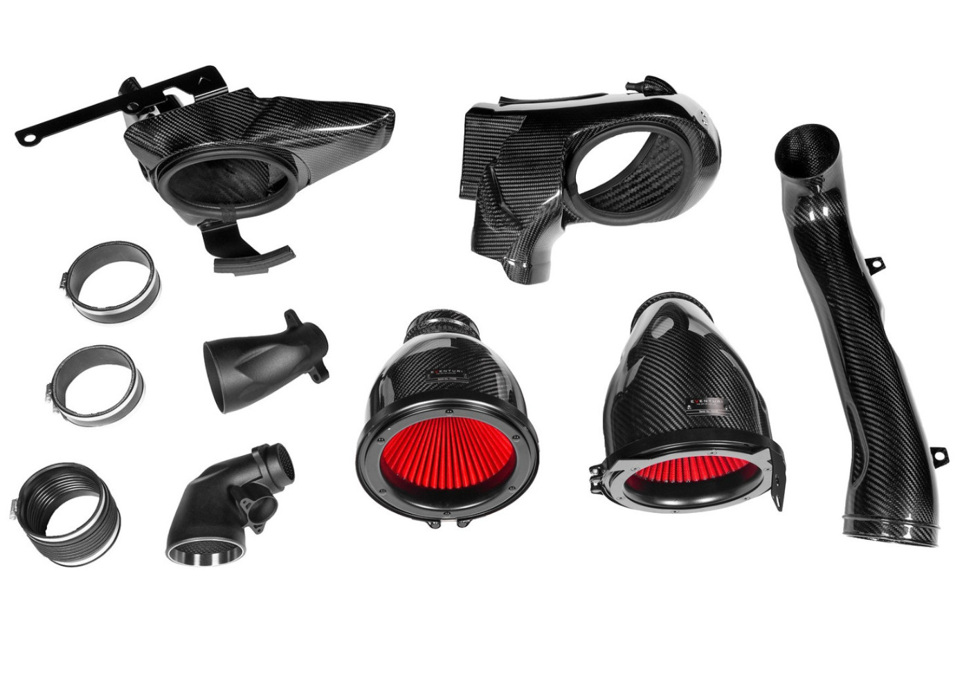 Airbox na pravé straně motoru je se vstupem do turba propojený dlouhou trubkou pro vedení vzduchu. Toto vedení je v podání Eventuri vyrobeno ze 100% prepreg karbonu, ma hldký vnitřní povrch a výrazně zvětšený průměr. Na straně airboxu začíná průměr na 4" (102 mm) a tento průměr si udržuje až ke vstupu do turba, kde se postupně zužuje. Trubka má integrované držáky, kterými je pevně uchycena ve správné pozici.