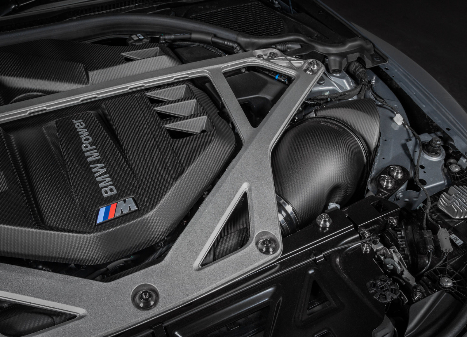 Systém přímého sání Eventuri pro BMW G80 M3 CS / BMW G82 M4 CSL obsahuje řadu komponentů, které byly vyvinuty pro tento konkrétní model vozu a vyrobeny s maximální pečlivostí tak, aby sada dosahovala nejvyšších standardů. Sání je zároveň přizpůsobeno pro použití v kombinaci s rozměrnou rozpěrou CS/CSL.