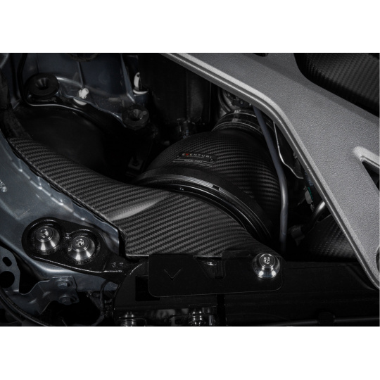 Maximálním využitím prostoru pod kapotou, který nově vyplňují karbonové airboxy s patentovaným tvarem a reverzně umístěnou filtrační vložkou, se zvětšila filtrační plocha o 40% oproti továrním filtrům. Vnější obal airboxu funguje jako redukce průměru až po vstup do turba, takže vzduch proudí plynule a bez restrikcí. Samotné vstupy do turbodmychadel jsou pak větší dokonce o 160% oproti továrním a na vnitřní straně mají unikátní ďolíčkový povrch, díky kterému nedochází ke zpomalování proudění vzduchu vlivem tření s vnitřní stěnou. Vzduch tak proudí rychleji do turbodmychadel a nedochází ke ztrátě tlaku.