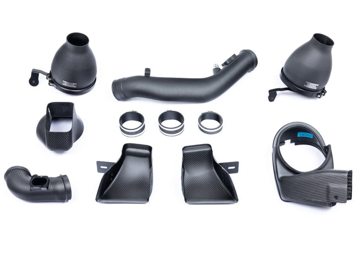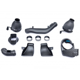 Maximálním využitím prostoru pod kapotou, který nově vyplňují karbonové airboxy s patentovaným tvarem a reverzně umístěnou filtrační vložkou, se zvětšila filtrační plocha o 40% oproti továrním filtrům. Vnější obal airboxu funguje jako redukce průměru až po vstup do turba, takže vzduch proudí plynule a bez restrikcí. Samotné vstupy do turbodmychadel jsou pak větší dokonce o 160% oproti továrním a na vnitřní straně mají unikátní ďolíčkový povrch, díky kterému nedochází ke zpomalování proudění vzduchu vlivem tření s vnitřní stěnou. Vzduch tak proudí rychleji do turbodmychadel a nedochází ke ztrátě tlaku.
