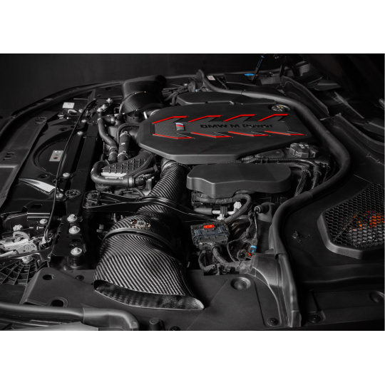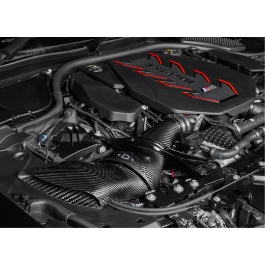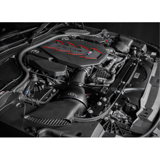Kit sání Eventuri pro BMW M5 G90 / G91 bylo navrženo tak, aby optimalizovalo proudění vzduchu k turbodmychadlům a zároveň minimalizovat pronikání horkého vzduchu z motorového prostoru do sání. Eventuri pro tento účel navrhlo uzavřené sání, které odděluje sací vedení od zbytku motorového prostoru a zároveň plní každý airbox ze dvou směrů čerstvým vzduchem. Sání využívá originální způsob plnění airboxu a navíc přidává strategicky umístěné nízkoprofilové nasávače, které ústí k okraji kapoty. Tyto nasávače čerpají vzduch z místa, které si udržuje trvale nízkou teplotu vzduchu a zajišťují, že motor vozu bude mít bez výjimky dostatek čerstvého nasávaného vzduchu. Mimo to přispívají tyto nasávače k výraznějšímu vnímání zvukového projevu turbodmychadel v kabině vozu.