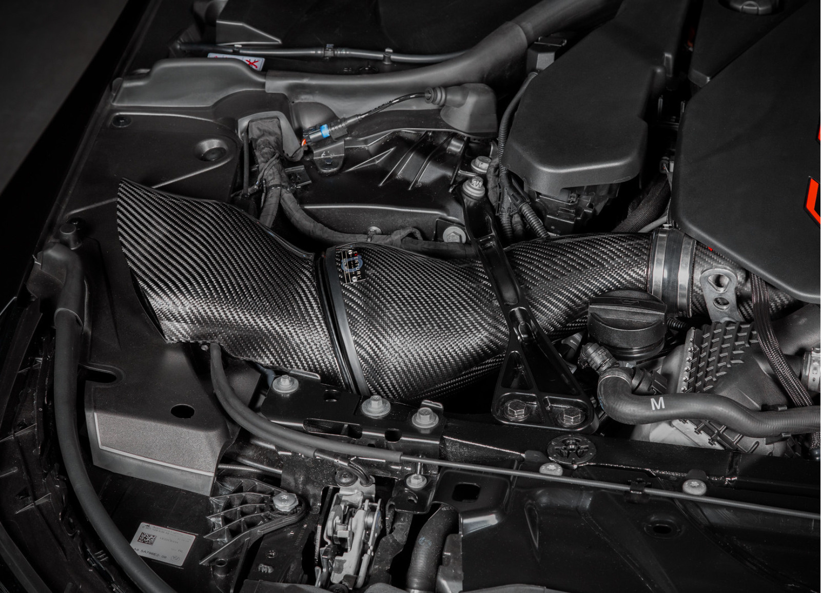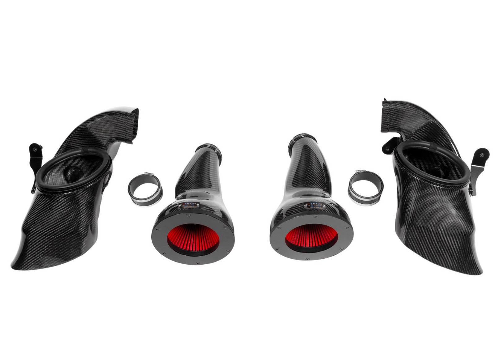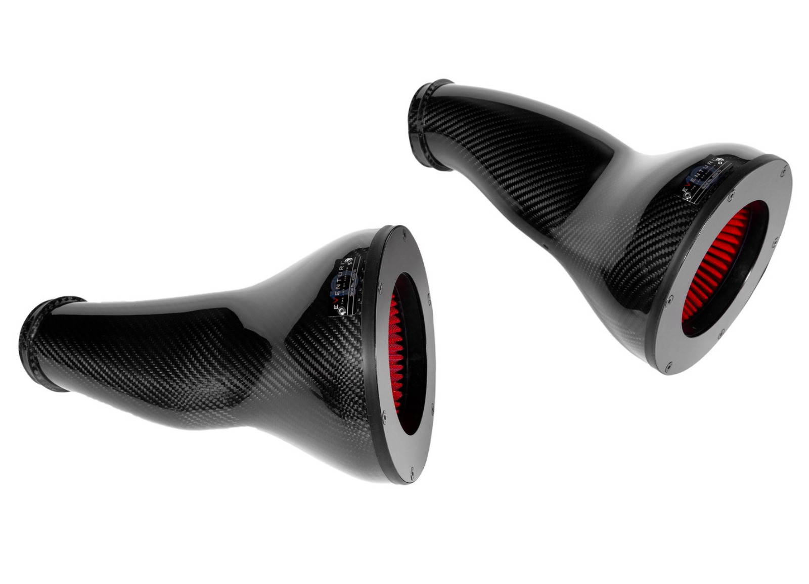 Pro přímé vedení čerstvého vzduchu do airboxů navrhlo Eventuri karbonové nasávače s dvojitým přísunem vzduchu. První je napojený na originální vedení vzduchu z ambientní oblasti za nárazníkem v oblasti světlometu. Nicméně tato pozice pro nasávání představuje podstatný zdroj poklesu tlaku v sání, protože nasávaný vzduch musí projít složitě tvarovaným vedením k airboxu. Toto řeší Eventuri přidáním druhého zdroje vzduchu pro sání, který ústí u postranních panelů v blízkosti přivírání kapoty. Dvojité plnění každého airboxu eliminuje nežádoucí pokles tlaku a zajišťuje za všech okolností dostatek čerstvého vzduchu pro oba filtry. Kromě toho přináší sekundární plnění také výraznější zvukový projev turbodmychadel přenášený do kabiny vozu. Nasávače jsou, stejně jako samotné airboxy, vyrobené ze 100% prepreg karbonu a společně tvoří dokonalý doplněk v motorovém prostoru.