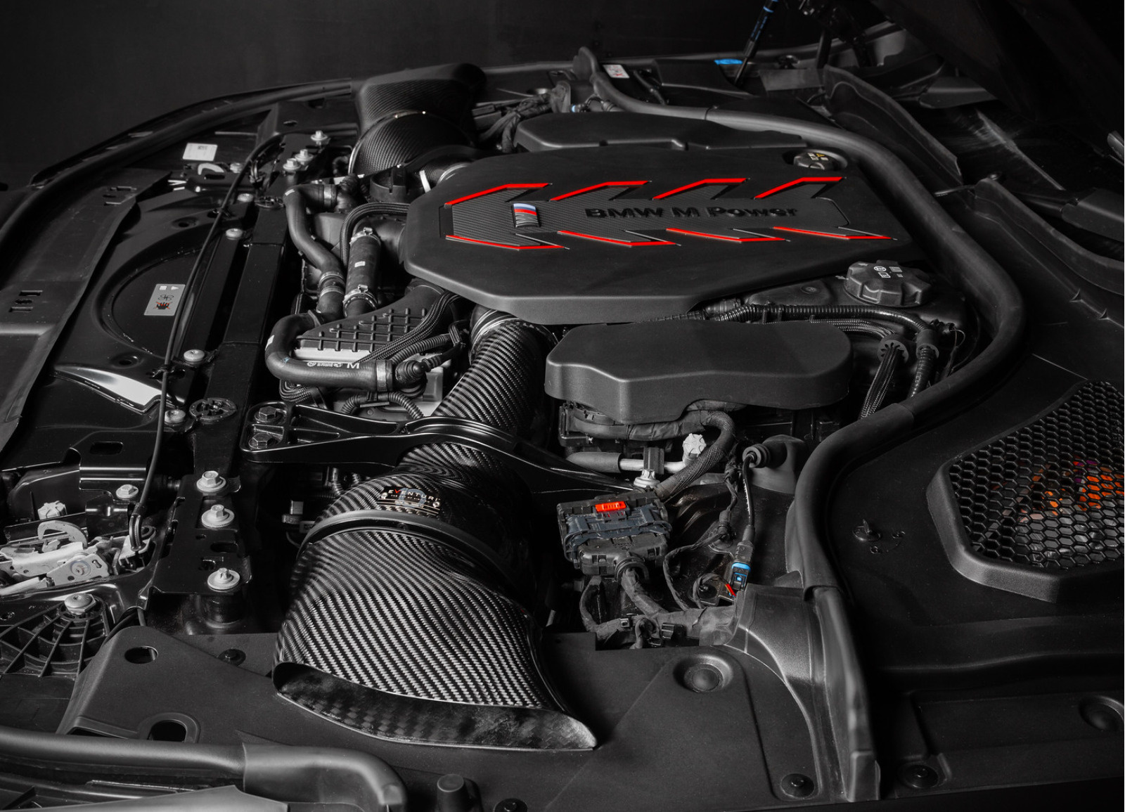Kit sání Eventuri pro BMW M5 G90 / G91 bylo navrženo tak, aby optimalizovalo proudění vzduchu k turbodmychadlům a zároveň minimalizovat pronikání horkého vzduchu z motorového prostoru do sání. Eventuri pro tento účel navrhlo uzavřené sání, které odděluje sací vedení od zbytku motorového prostoru a zároveň plní každý airbox ze dvou směrů čerstvým vzduchem. Sání využívá originální způsob plnění airboxu a navíc přidává strategicky umístěné nízkoprofilové nasávače, které ústí k okraji kapoty. Tyto nasávače čerpají vzduch z místa, které si udržuje trvale nízkou teplotu vzduchu a zajišťují, že motor vozu bude mít bez výjimky dostatek čerstvého nasávaného vzduchu. Mimo to přispívají tyto nasávače k výraznějšímu vnímání zvukového projevu turbodmychadel v kabině vozu.
