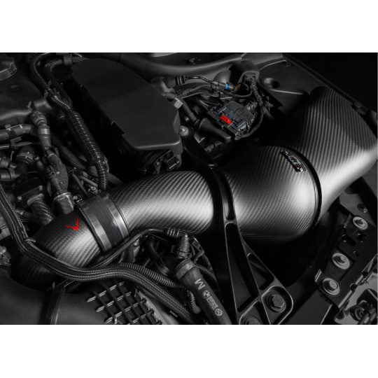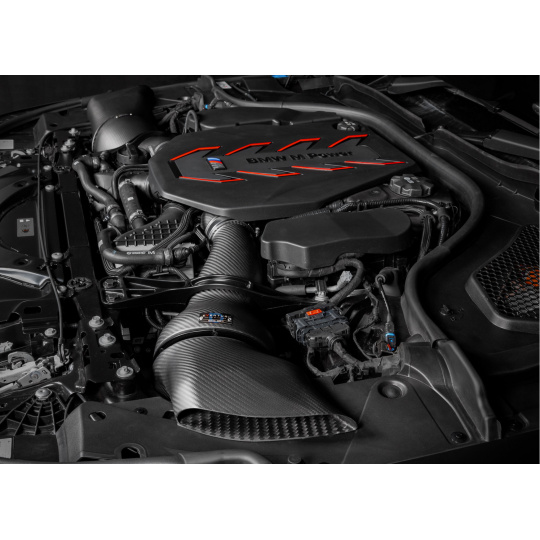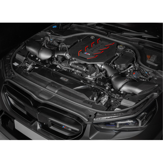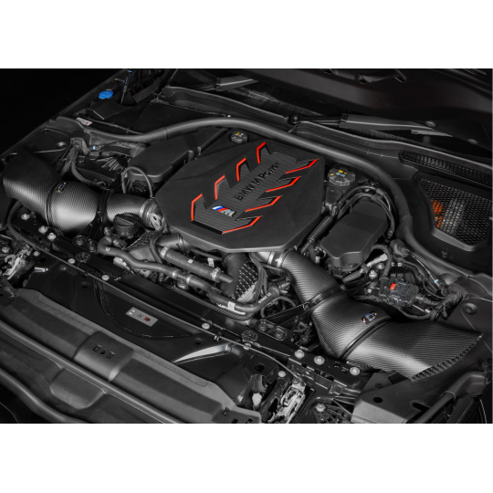 Kit sání Eventuri pro BMW M5 G90 / G91 bylo navrženo tak, aby optimalizovalo proudění vzduchu k turbodmychadlům a zároveň minimalizovat pronikání horkého vzduchu z motorového prostoru do sání. Eventuri pro tento účel navrhlo uzavřené sání, které odděluje sací vedení od zbytku motorového prostoru a zároveň plní každý airbox ze dvou směrů čerstvým vzduchem. Sání využívá originální způsob plnění airboxu a navíc přidává strategicky umístěné nízkoprofilové nasávače, které ústí k okraji kapoty. Tyto nasávače čerpají vzduch z místa, které si udržuje trvale nízkou teplotu vzduchu a zajišťují, že motor vozu bude mít bez výjimky dostatek čerstvého nasávaného vzduchu. Mimo to přispívají tyto nasávače k výraznějšímu vnímání zvukového projevu turbodmychadel v kabině vozu.