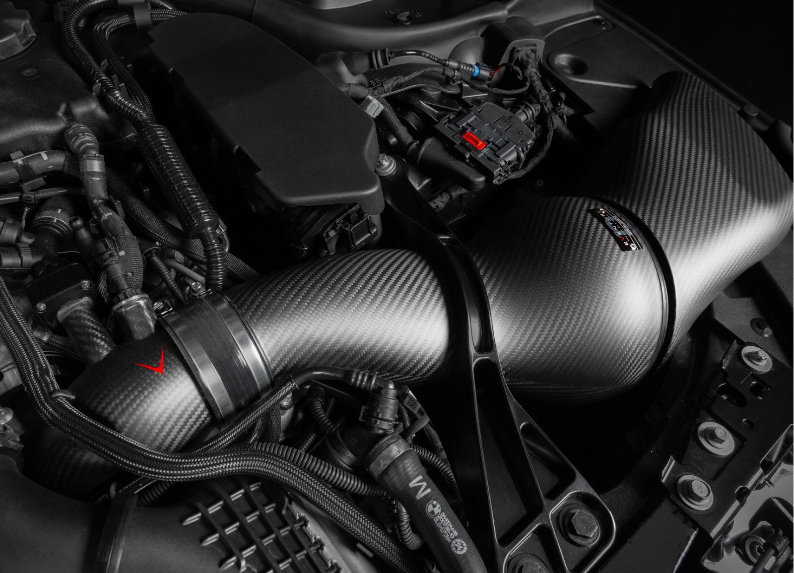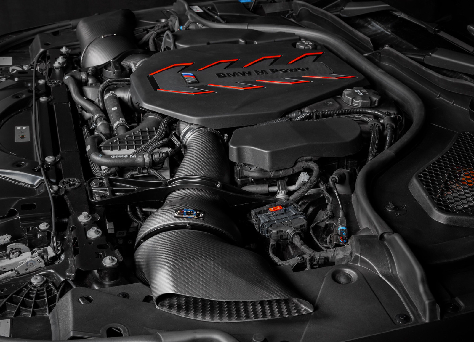 Kit sání Eventuri pro BMW M5 G90 / G91 bylo navrženo tak, aby optimalizovalo proudění vzduchu k turbodmychadlům a zároveň minimalizovat pronikání horkého vzduchu z motorového prostoru do sání. Eventuri pro tento účel navrhlo uzavřené sání, které odděluje sací vedení od zbytku motorového prostoru a zároveň plní každý airbox ze dvou směrů čerstvým vzduchem. Sání využívá originální způsob plnění airboxu a navíc přidává strategicky umístěné nízkoprofilové nasávače, které ústí k okraji kapoty. Tyto nasávače čerpají vzduch z místa, které si udržuje trvale nízkou teplotu vzduchu a zajišťují, že motor vozu bude mít bez výjimky dostatek čerstvého nasávaného vzduchu. Mimo to přispívají tyto nasávače k výraznějšímu vnímání zvukového projevu turbodmychadel v kabině vozu.