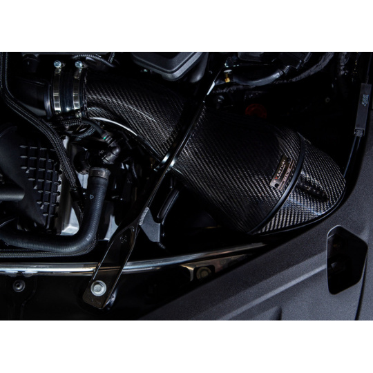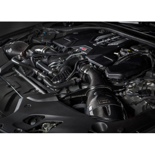 Kit sání Eventuri pro BMW M8 F92 je výsledkem náročného vývoje, testování a simulací, které předcházely finální produkt. Představuje perfektní rovnováhu mezi dosažením nerestriktivního vedení vzduchu za použití polootevřených airboxů a snahy o dosažení co nejnižší teploty nasávaného vzduchu. Tomu napomáhá dodatečný tepelný štít stínicí pomocí zlaté izolace teplo, které by mohlo pronikat z motorového prostoru a soustava difuzorů pro dostatečný přísun čerstvého vzduchu.