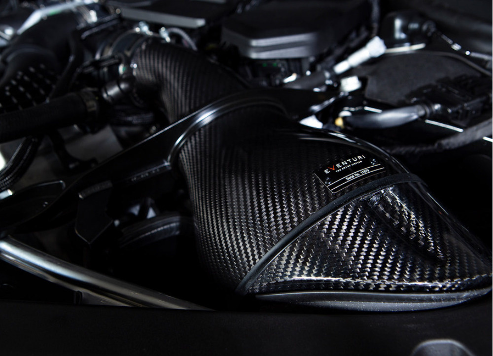 Karbonové airboxy Eventuri v sobě kombinují vlastní filtrační vložky, hliníkové ústí pro snadnější vstup vzduchu a samotný patentovaný airbox, který plynule přechází v sací trubici vedoucí k motoru. Díky reverzně umístěné vložce v airboxu je celá délka airboxu využita pro plynulé směrování vzduchu k trubici. Nahrazena tak byla i originální trubice s pružnou harmonikovou částí, která je zdrojem nežádoucích turbulencí vzduchu. Výsledkem je celkově hladší cesta vzduchu od filtru až po turbodmychadlo.