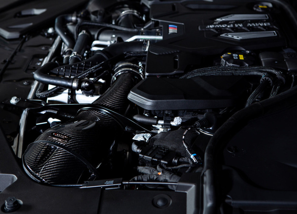 Kit sání Eventuri pro BMW M8 F92 je výsledkem náročného vývoje, testování a simulací, které předcházely finální produkt. Představuje perfektní rovnováhu mezi dosažením nerestriktivního vedení vzduchu za použití polootevřených airboxů a snahy o dosažení co nejnižší teploty nasávaného vzduchu. Tomu napomáhá dodatečný tepelný štít stínicí pomocí zlaté izolace teplo, které by mohlo pronikat z motorového prostoru a soustava difuzorů pro dostatečný přísun čerstvého vzduchu.
