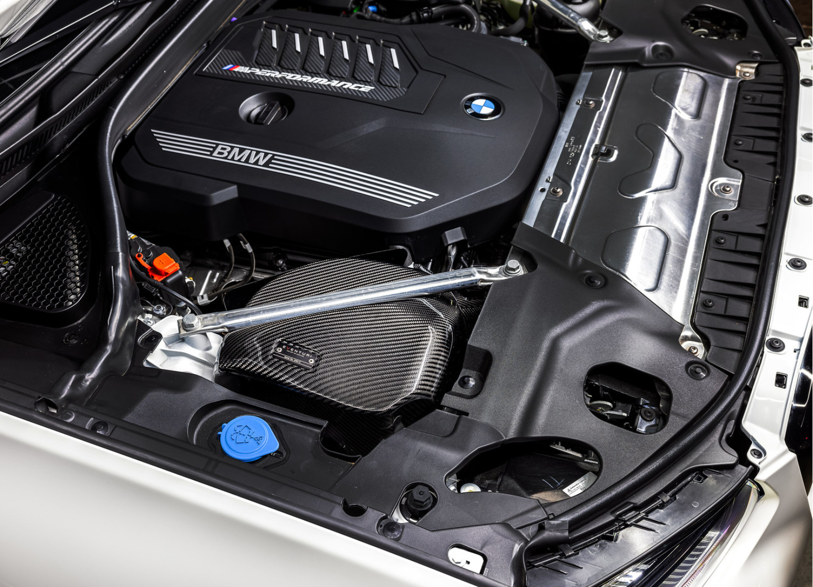 U motorizace M40i jsou sací svody v těsné blízkosti airboxu, což je pro návrh funkčního sání skutečnou výzvou. Vysoká teplota pronikající do sacího vedení je totiž příčinou nižšího výkonu. Eventuri tak přichází s řešením v podobě dokonale utěsněného airboxu ze 100% prepreg karbonu, což zabraňuje tomu, aby turbo nasávalo zahřátý vzduch. Karbonová vlákna navíc doplňuje tepelný štít s tepelně izolační reflexní vrstvou, která odráží teplo generované výfukovými svody. Pro maximální objem přiváděného vzduchu byl maximalizován průřez trubky sání a to na 109 mm (4,3"), který se plynule zužuje směrem k turbu, aby se zrychlilo proudění vzduchu před turbem. Celé sání pak doplňuje vlastní suchý sportovní vzduchový filtr s vysokým průtokem a filtrační schopností s certifikací ISO.