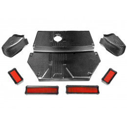 Kryt motoru Eventuri je vyroben ze 100% prepreg karbonu a svými rozměry přesně kopíruje tovární díl. Nad krytem motoru není v motorovém prostoru dostatek místa pro jeho zvětšení. Navíc by taková úprava narušila přímé vedení vzduchu do motoru. Díky své konstrukci z karbonu je ale nový kryt tenčí a lehčí a dává tak vyniknout zvukovému projevu vozu.