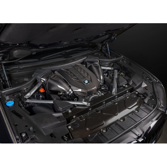 Karbonové sání Eventuri pro BMW X5 a X6 M50i vychází ze sání navrženého původně pro modely X5M a X6M. Kit sání Eventuri kompletně nahrazuje tovární airboxy s cílem snížit ztrátu tlaku v sacím vedení a zroveň zvýšit kapacitu nasávaného vzduchu a udržet jeho teplotu na minimální úrovni. BMW navrhlo tovární sání s nasáváním vzduchu v přední části, zatímco vstupy do turbodmychadel vedou směrem dozadu. To znamená, že proudicí vzduch se při svém proudění musí otočit o 180 stupňů, aby se dostal do turbodmychadel. To samozřejmě způsobuje nežádoucí restrikci ve vedení vzduchu.