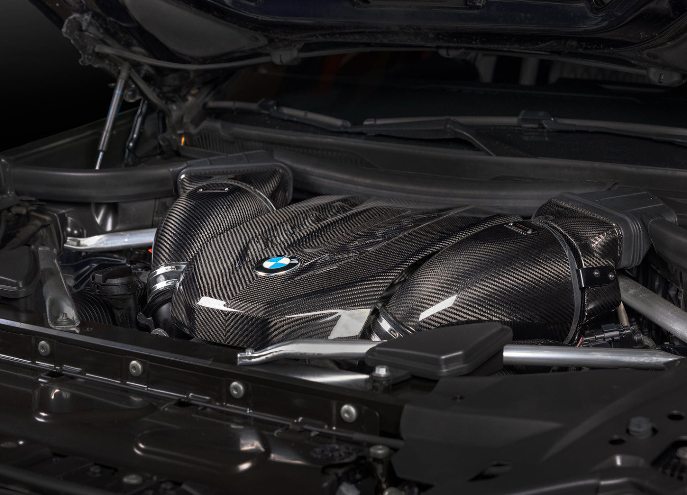 Karbonové sání Eventuri pro BMW X5 a X6 M50i vychází ze sání navrženého původně pro modely X5M a X6M. Kit sání Eventuri kompletně nahrazuje tovární airboxy s cílem snížit ztrátu tlaku v sacím vedení a zroveň zvýšit kapacitu nasávaného vzduchu a udržet jeho teplotu na minimální úrovni. BMW navrhlo tovární sání s nasáváním vzduchu v přední části, zatímco vstupy do turbodmychadel vedou směrem dozadu. To znamená, že proudicí vzduch se při svém proudění musí otočit o 180 stupňů, aby se dostal do turbodmychadel. To samozřejmě způsobuje nežádoucí restrikci ve vedení vzduchu.