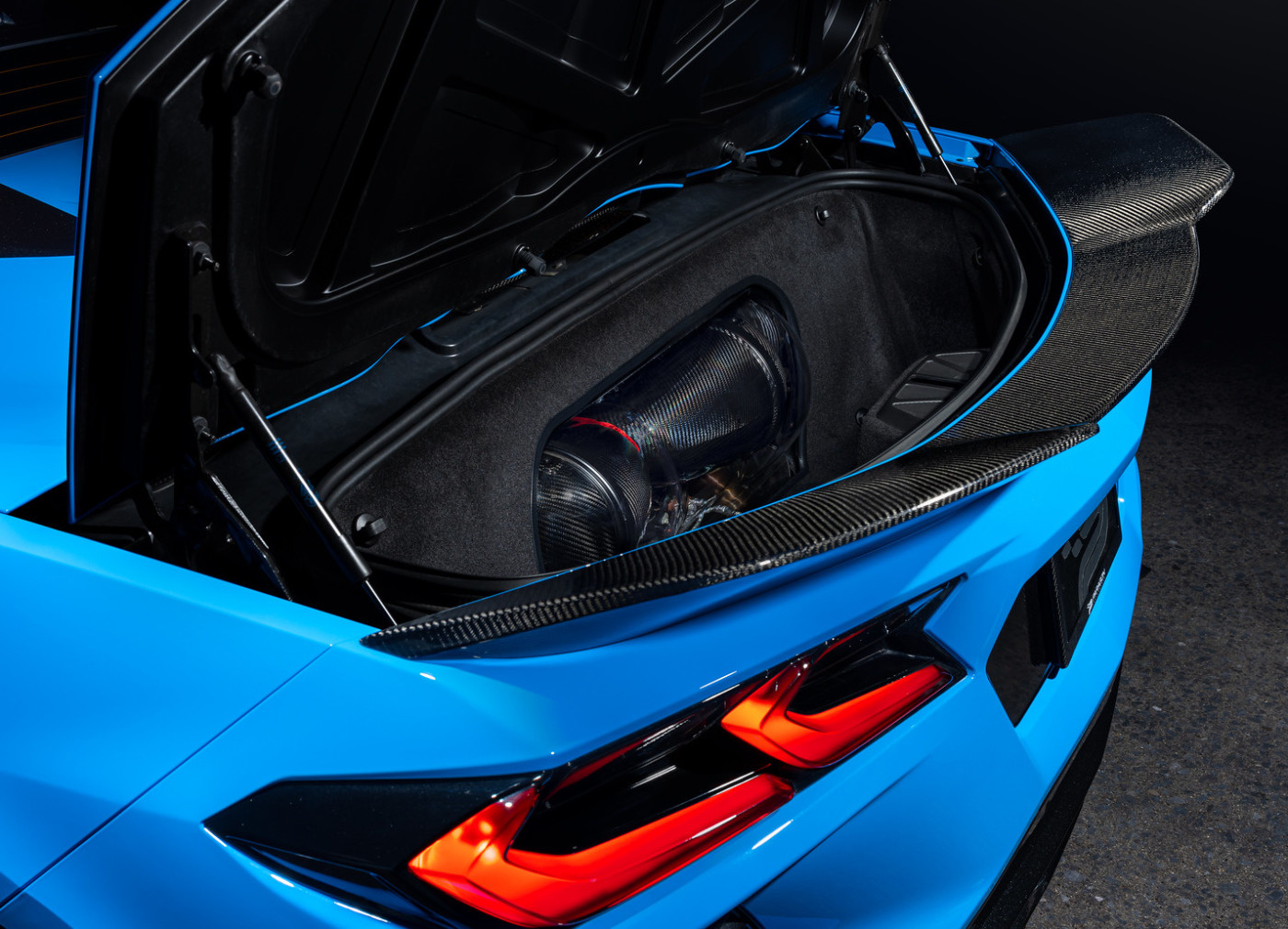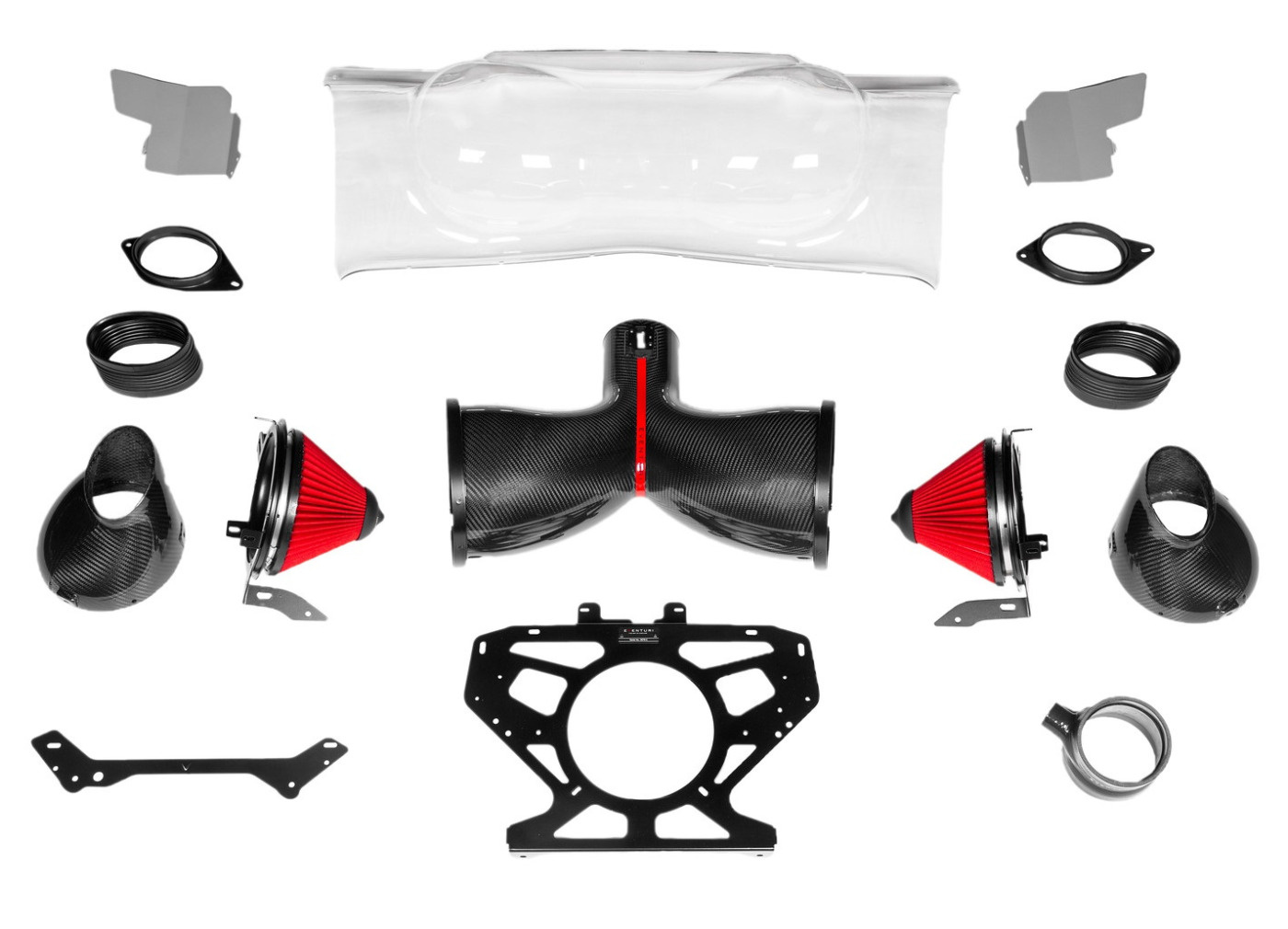 Také sání pro Corvette C8 využívá hned dvojici airboxů s patentovaným tvarem a obráceně umístěnými vzduchovými filtry. Vzduch tak proudí sáním bez prudkých nežádoucích restrikcí a díky uzavřené konstrukci ze 100% karbonu nedochází k pronikání horkého vzduchu do sání.