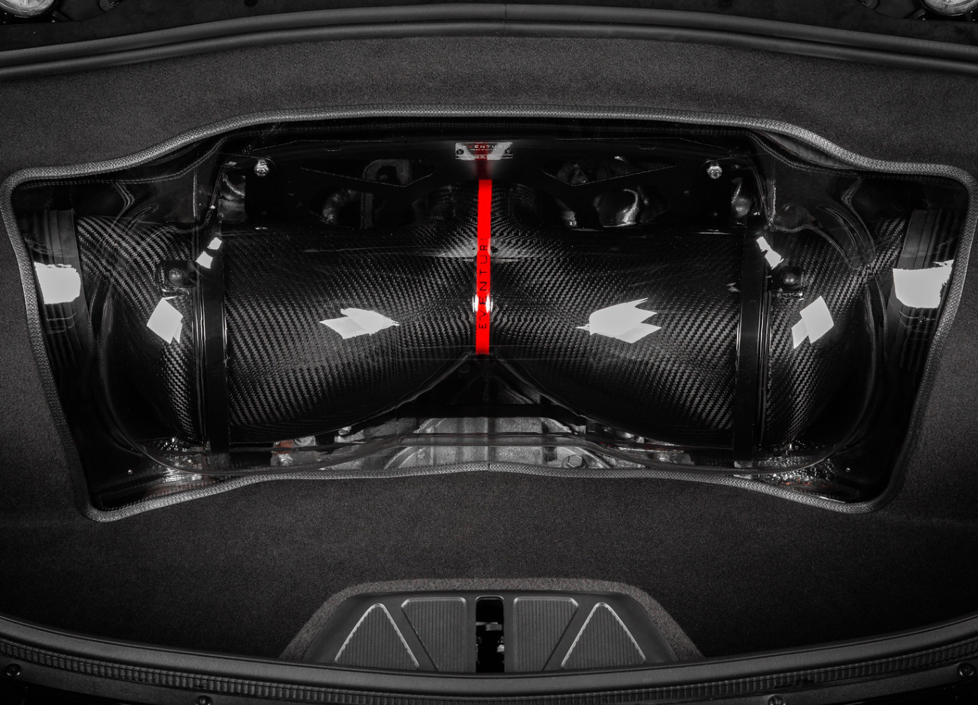Navržení kitu sání s potřebným zvětšeným objemem by vzhledem k továrnímu tvaru příčky mezi motorovým a zavazadlovým prostorem nebylo možné bez vytvoření zcela nového krytu v této příčce. Když už bylo třeba vytvořit nový kryt, využilo Eventuri šance ukázat nádherný kit sání a kryt vyrobilo z čirého polykarbonátu. Nově je tak karbonové sání viditelné po zvednutí kapoty skrz zavazadlový prostor.