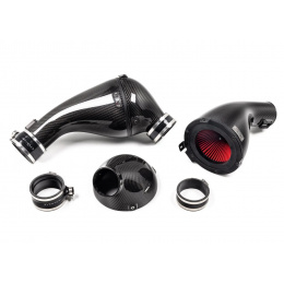 Karbonový přívod vzduchu těsně přiléhá k airboxu a přivádí čerstvý vzduch z bočních sání přímo k filtru. Nasazuje se na původní (OEM) vedení vzduchu a zajišťuje plynulý přechod na kruhový tvar vstupu do sání Eventuri. Aby bylo zajištěno dokonalé odizolování od tepla z motorového prostoru, je vůči airboxu utěsněný pomocí neoprenového těsnění.