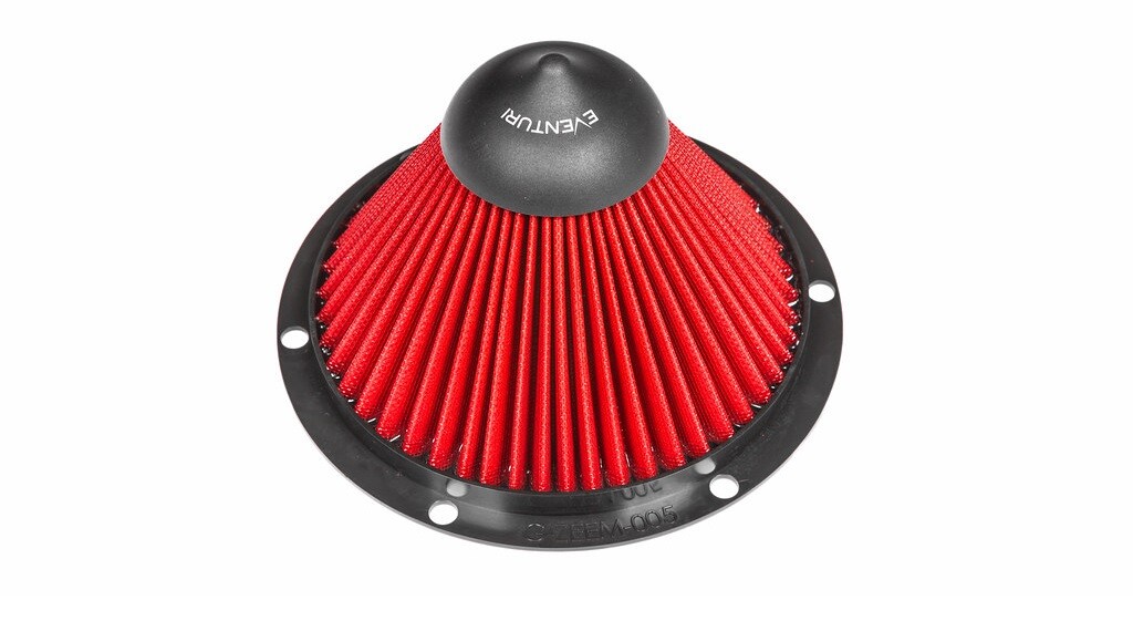 Aby bylo dosaženo maximální kapacity a průchodnosti vzduchu sáním, navrhlo Eventuri vlastní filtr, který spolu s airboxem využívá na maximum volný motorový prostor. Samotný filtr navíc splňuje náročné požadavky normy ISO a je konstruován jako suché filtrační médium (bez impregnace). Součástí je dvojice (vnitřní a vnější) kónusů, které směrují vzduch do a z filtru.