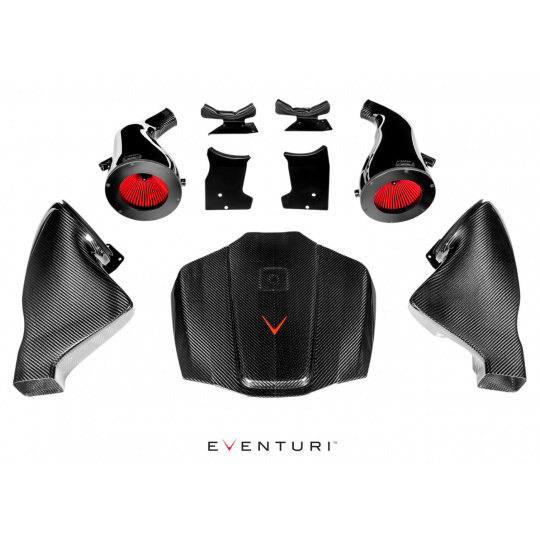 Kit sání Eventuri pro Mercedes AMG GTR / GTS / GT je plně uzavřeným kitem sání využívajícím patentovaný tvar airboxů, který umožňuje nejpřímější možné vedení vzduchu k turbodmychadlům. Každý airbox obsahuje sportovní vložku vzduchového filtru vyrobenou dle vlastního návrhu a splňující nejpřísnější nároky na filtraci. Airboxy využívají na maximum dostupný prostor pod kapotou. Kvůli tomu Eventuri vyrobilo i vlastní středový kryt, který je rozměrům airboxů přizpůsobený. Systém je pak v přední části vybaven nasávači čerstvého vzduchu, které navazují na nasávače v masce chladiče. Sání bylo nezávisle testováno firmou RENNtech, která platí za naprostou špičku mezi úpravci vozů Mercedes Benz / AMG. Kit sání je dodáván jako komplet včetně středového krytu, který má na sobě přípravu pro originální plaketu AMG.