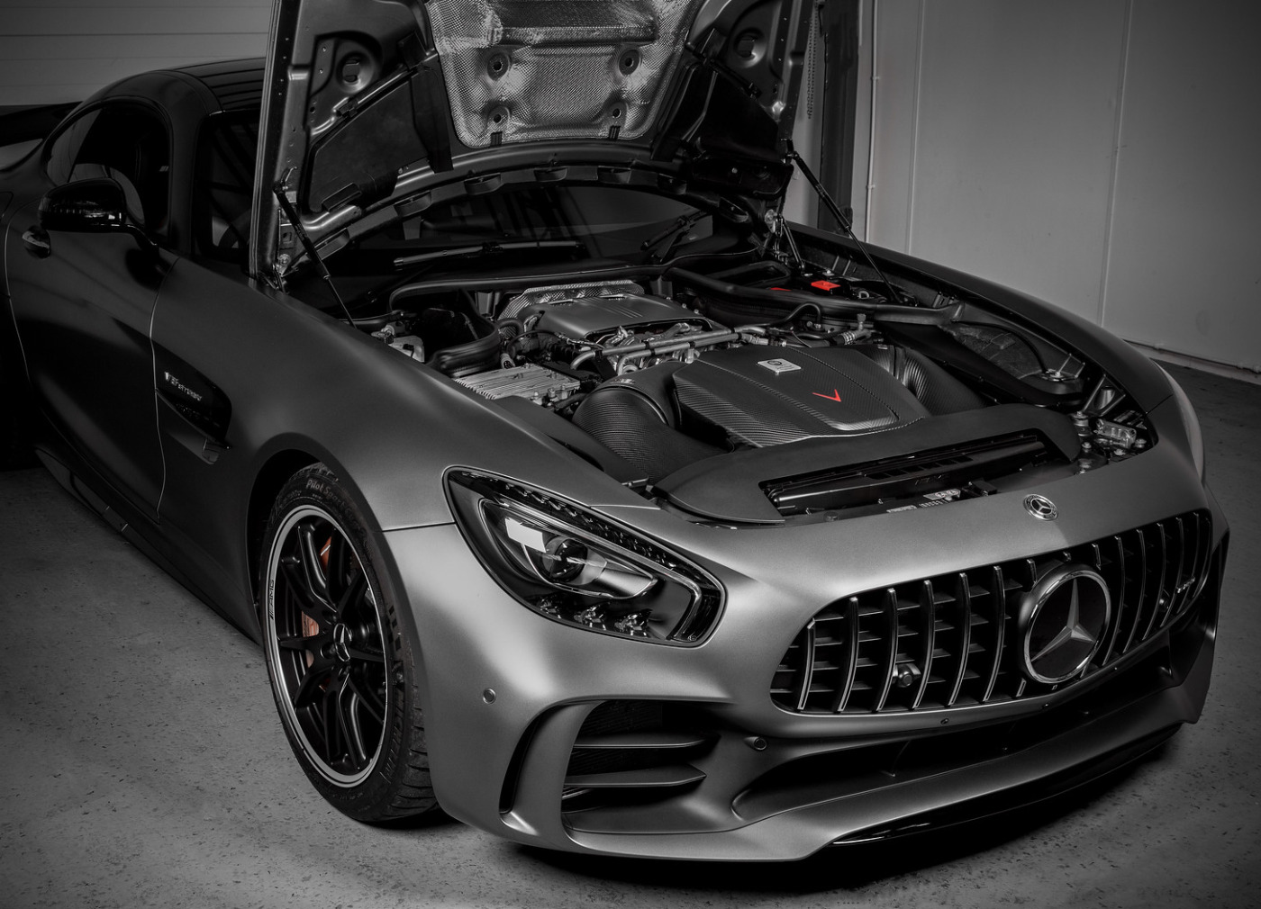 Karbonové airboxy Eventuri pro Mercedes AMG GTR / GTS / GT jsou vyrobeny kompletně ze 100% prepreg karbonu a kromě špičkové filtrační vložky zahrnují také laserem řezané držáky, hliníkové vstupy do airboxu a odvětrávací výstupy. Patentovaný tvar airboxu s opačně umístěným filtrem zajišťuje plynulý přechod z nasávací části do vstupu k turbodmychadlu. Airboxy Eventuri nahrazují v jednom kuse jak původní airbox, tak originální flexibilní vedení k turbodmychadlům.