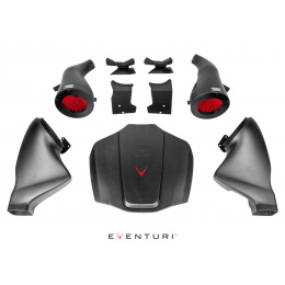 Kit sání Eventuri pro Mercedes AMG GTR / GTS / GT je plně uzavřeným kitem sání využívajícím patentovaný tvar airboxů, který umožňuje nejpřímější možné vedení vzduchu k turbodmychadlům. Každý airbox obsahuje sportovní vložku vzduchového filtru vyrobenou dle vlastního návrhu a splňující nejpřísnější nároky na filtraci. Airboxy využívají na maximum dostupný prostor pod kapotou. Kvůli tomu Eventuri vyrobilo i vlastní středový kryt, který je rozměrům airboxů přizpůsobený. Systém je pak v přední části vybaven nasávači čerstvého vzduchu, které navazují na nasávače v masce chladiče. Sání bylo nezávisle testováno firmou RENNtech, která platí za naprostou špičku mezi úpravci vozů Mercedes Benz / AMG. Kit sání je dodáván jako komplet včetně středového krytu, který má na sobě přípravu pro originální plaketu AMG.
