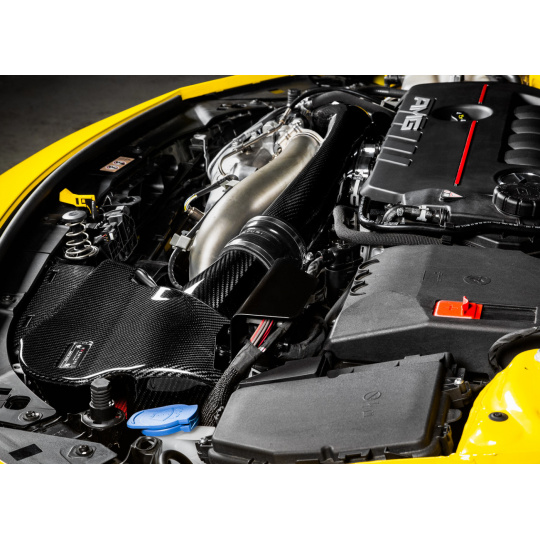 Karbonové sání Eventuri pro vůz Mercedes A35 AMG / CLA35 AMG / GLB 35 / A250 bylo vyvinuto tak, aby zásobovalo turbo maximálním možným množstvím vzduchu, proudícím co možná nejméně restriktivním způsobem a zachovávajícím si co nejnižší teplotu nasávaného vzduchu. Vzhledem k tomu, že sání vzduchu je u tohoto vozu umístěno v blízkosti výfuku, je funkčním řešením sportovního sání pouze uzavřený airbox s odstíněním od zdroje tepla. Právě prolínání horkého vzduchu od svodů do sání je hlavní problém originálního airboxu. Rozměrný carbonový airbox je navíc dolněn dodatečným otvorem na chladné straně sání.