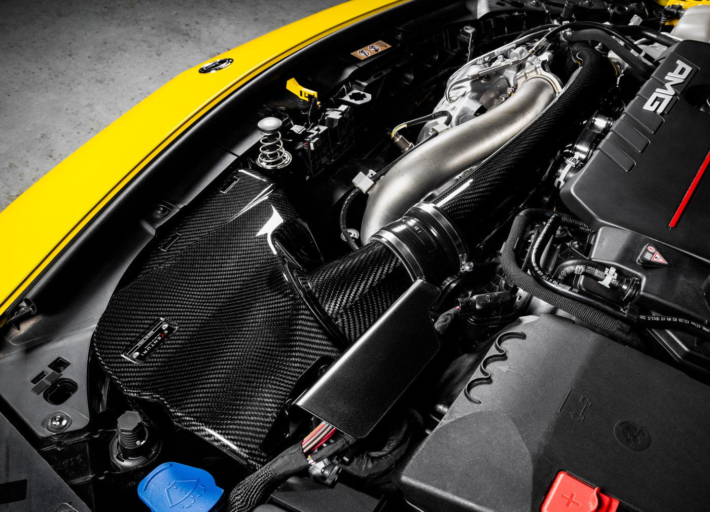 Karbonové sání Eventuri pro vůz Mercedes A35 AMG / CLA35 AMG / GLB 35 / A250 bylo vyvinuto tak, aby zásobovalo turbo maximálním možným množstvím vzduchu, proudícím co možná nejméně restriktivním způsobem a zachovávajícím si co nejnižší teplotu nasávaného vzduchu. Vzhledem k tomu, že sání vzduchu je u tohoto vozu umístěno v blízkosti výfuku, je funkčním řešením sportovního sání pouze uzavřený airbox s odstíněním od zdroje tepla. Právě prolínání horkého vzduchu od svodů do sání je hlavní problém originálního airboxu. Rozměrný carbonový airbox je navíc dolněn dodatečným otvorem na chladné straně sání.