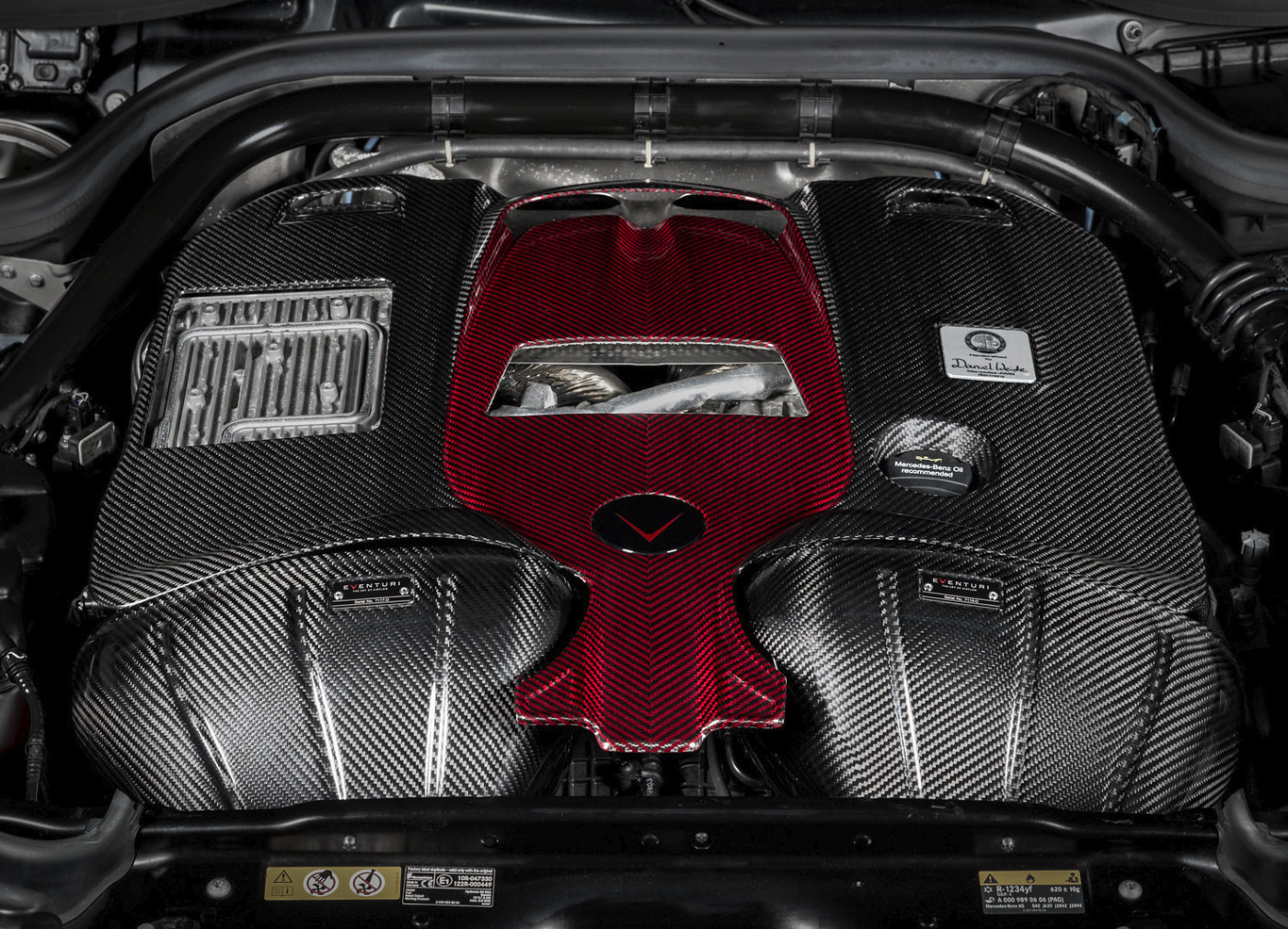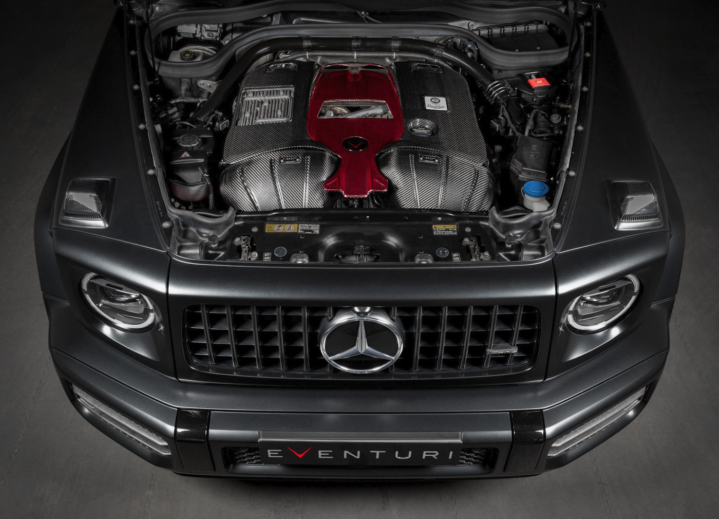 Karbonové sání Eventuri pro Mercedes G63 AMG je precizně vyrobeno ze 100% prepreg karbonu v kombinaci s červeným kevlarem na krytu motoru. Doplňuje ho řada komponentů vyráběných technologií CNC a unikátní vzduchové filtry vlastního designu. Sání Eventuri nastavuje nový standard pro úpravy sání platformy Mercedes G-Class. Eventuri využívá maximum prostoru pod kapotou vozu, což vedlo ke zvětšení objemu a zvýšení kapacity proudění vzduchu o 25% v porovnání s originálními airboxy. To vše při zachování originálních přívodů čerstvého vzduchu.