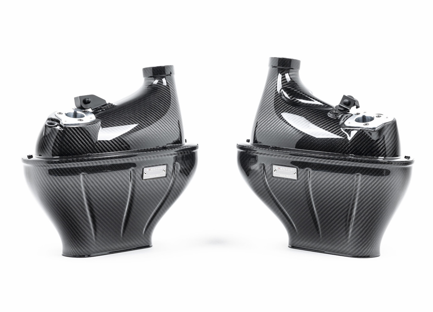 Karbonové airboxy sání Eventuri pro G63 AMG se skládají ze dvou dílů, které vzájemně odděluje vzduchový filtr umístěný mezi nimi. Oba díly jsou vyrobeny tak, aby dohromady maximalizovaly objem sání pro nasávaný vzduch a zároveň mu poskytovaly přímou cestu do turbodmychadel. Základním úkolem bylo právě zvětšení vnitřního objemu, které zajišťuje navýšení kapacity proudění vzduchu proti továrnímu sání.
