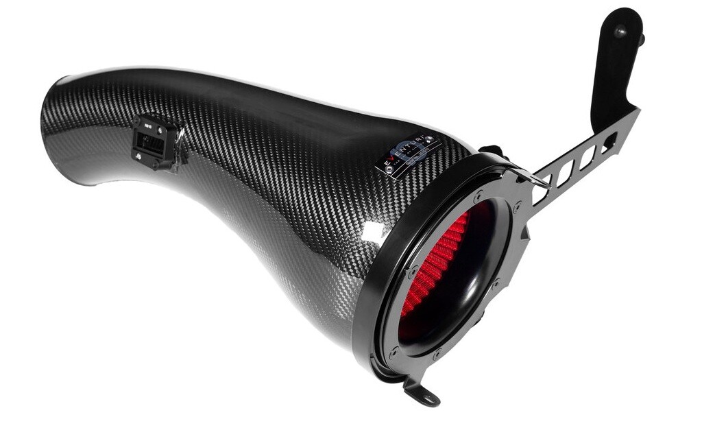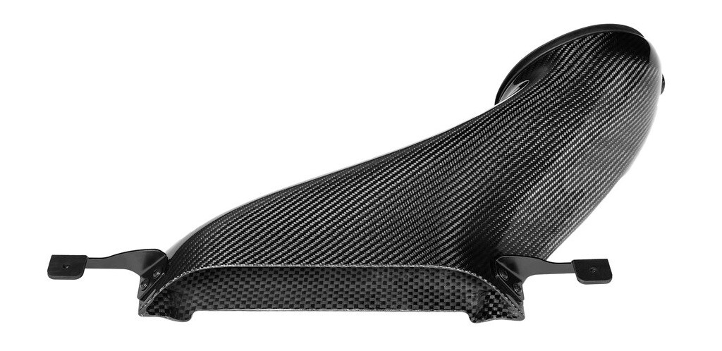 Karbonový nasávač čerstvého vzduchu odvádí vzduch nasávaný v originálním místě předního nárazníku do samotného airboxu. Oproti originálnímu dílu se tak ale děje s optimálnějším prouděním. Tvar nasávače napomáhá přirozenějšímu proudění vzduchu a účinnost nasávání čerstvého vzduchu je tak podstatně vyšší. K airboxu doléhá nasávač přes gumové těsnění, které absorbuje vibrace motoru a utěsňuje sací prostor. Celý nasávač je pak v motorovém prostoru uchycený v originálních montážních bodech pomocí skrytého spojovacího materiálu pro co nejčistší instalaci a finální vzhled.