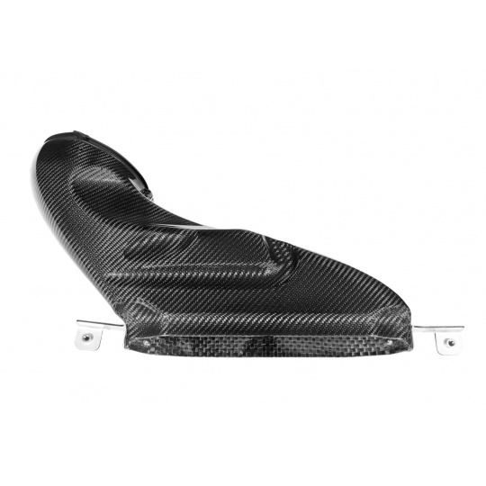 Karbonový nasávač čerstvého vzduchu odvádí vzduch nasávaný v originálním místě předního nárazníku do samotného airboxu. Oproti originálnímu dílu se tak ale děje s optimálnějším prouděním. Tvar nasávače napomáhá přirozenějšímu proudění vzduchu a účinnost nasávání čerstvého vzduchu je tak podstatně vyšší. K airboxu doléhá nasávač přes gumové těsnění, které absorbuje vibrace motoru a utěsňuje sací prostor. Celý nasávač je pak v motorovém prostoru uchycený v originálních montážních bodech pomocí skrytého spojovacího materiálu pro co nejčistší instalaci a finální vzhled.
