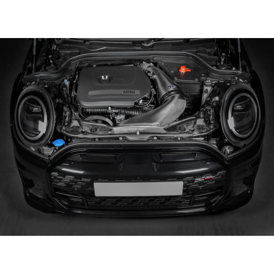 Karbonové sání Eventuri pro F6x modely Mini Cooper S a JCW má plně uzavřenou konstrukci s patentovaným obráceným umístěním vzduchového filtru a zvětšený objem oproti originálnímu airboxu. Uzavřená konstrukce ze 100% prepreg karbonu je klíčová pro udržení nízkých teplot nasávaného vzduchu a zabránění pronikání horkého vzduchu do sání, což je klíčové pro maximalizaci výkonu během jízdy s vysokými nároky.