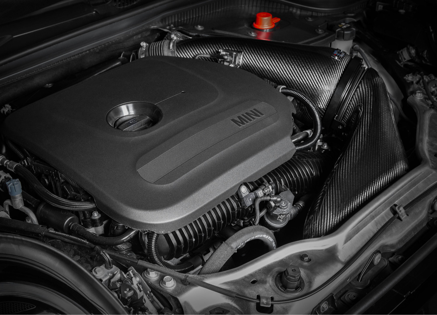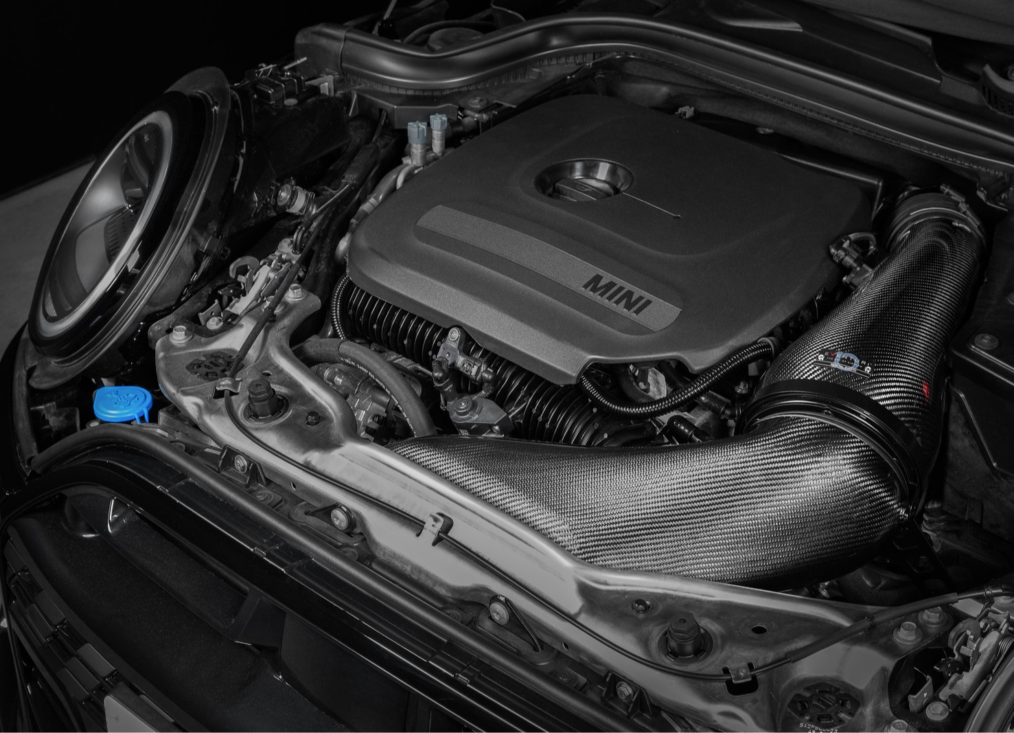 Karbonové sání Eventuri pro F6x modely Mini Cooper S a JCW má plně uzavřenou konstrukci s patentovaným obráceným umístěním vzduchového filtru a zvětšený objem oproti originálnímu airboxu. Uzavřená konstrukce ze 100% prepreg karbonu je klíčová pro udržení nízkých teplot nasávaného vzduchu a zabránění pronikání horkého vzduchu do sání, což je klíčové pro maximalizaci výkonu během jízdy s vysokými nároky.
