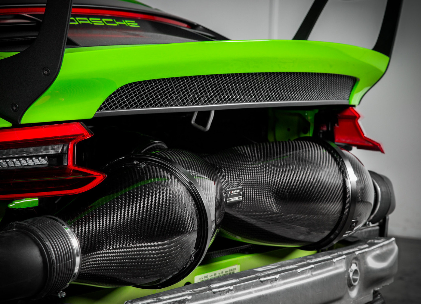 Karbonové sání Eventuri pro Porsche 991.1 GT3 RS a 991.2 GT3 RS bylo navrženo tak, aby v porovnání s továrním airboxem nabízelo přímější a méně restriktivní vedení vzduchu do motoru. Sání využívá hned dva airboxy s patentovaným tvarem, které v sobě ukrývají jedinečné filtrační vložky. Celková kapacita vzduchu byla navýšena, stejně jako průtok vzduchu sacím vedením. Filtrační vložky mají vnější průměr 192 mm a každá z nich nabízí filtrační plochu 110000 mm2. Díky obalu z pravého karbonu poskytuje také sání perfektní ochranu před pronikáním horkého vzduchu. Výsledkem je vyšší výkon vozu a zejména rychlejší reakce na sešlápnutí plynu.