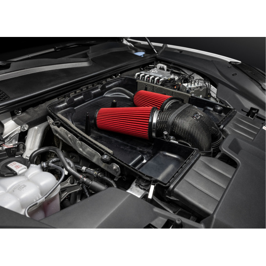Originální kryt airboxu se ukázal jako velmi limitující hned v několika ohledech. Na straně výstupu omezoval vedení vzduchu z kolektoru a tím i množství vzduchu proudícího k turbodmychadlům. Dále omezoval samotný objem airboxu jako zásobníku pro nasávaný vzduch. A v neposlední řadě limitoval rozměry použitého filtračního média. Zvětšením krytu mohl být podstatně zvětšen výstup v podobě kolektoru, který svádí vzduch k jednotlivým vstupům do turbodmychadel a také bylo možné použít větší vzduchové filtry. Kryt je vyroben ze 100% prepreg karbonu a montuje se na tovární úchyty.