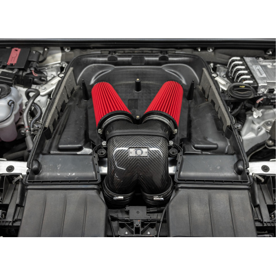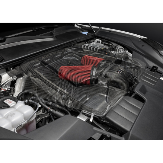 Karbonové sání Eventuri pro motory 4.0TFSI V8 EA825 je kompletním redesignem továrního vedení vzduchu až k turbodmychadlům. Nyní bylo sání přizpůsobeno také pro nejnovější model 2025+. Každý komponent včetně horního krytu je navržený tak, aby zásoboval turbodmychadla maximem čerstvého vzduchu bez restrikcí a díky tomu sání dosahovalo špičkových výsledků pro tuto platformu. Originální airbox omezoval proudění vzduchu svým objemem. Ten narostl díky použití nového horního víka z prepreg karbonu. Větší objem umožnil také použití větších vzduchových filtrů. Konkurenční výrobci do krytu zpravidla nezasahují a zůstává jim tak omezený prostor pro vzduchové filtry a pracují s menší zásobou vzduchu.