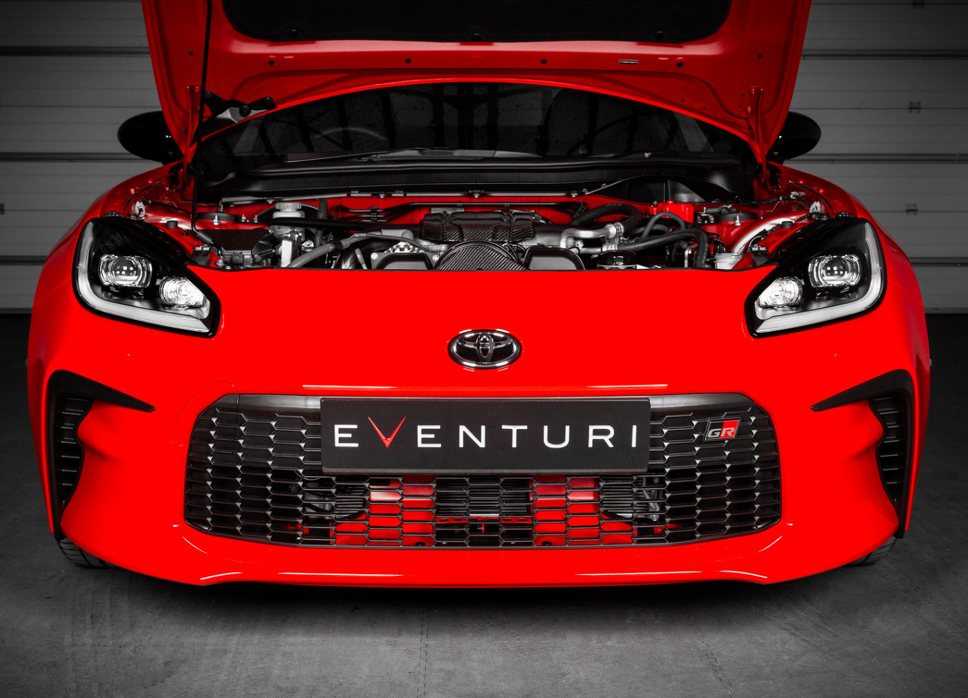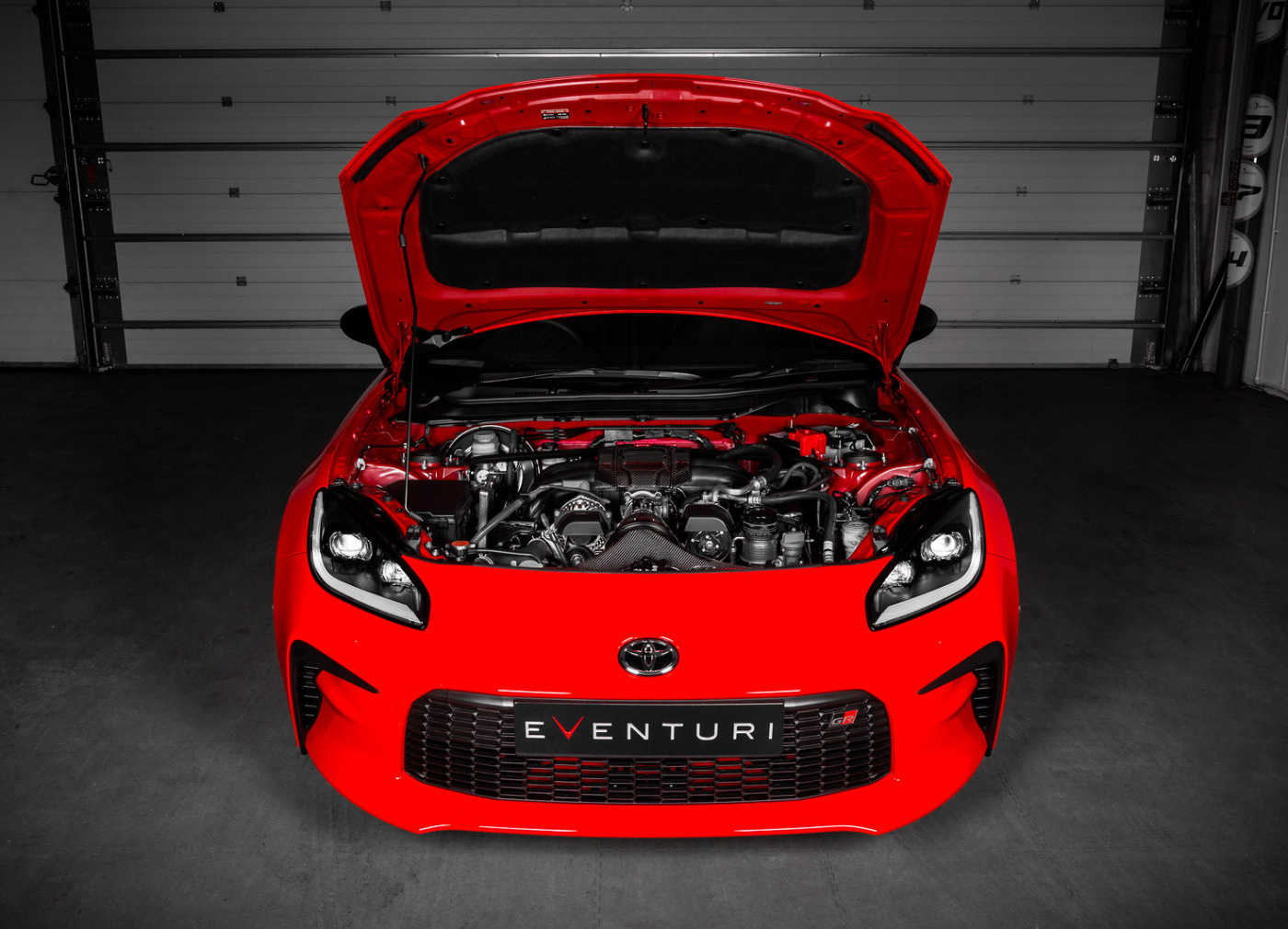 Karbonové sání Eventuri pro Toyota GR86 a Subaru BRZ je výsledkem testování nespočtu konfigurací a více než 125 měření na brzdě pro dosažení optimálního designu. Během vývojové fáze se myslelo jak na majitele sériových vozů, tak na ty, kteří plánují svůj vůz upravovat. Atmosférický motor boxer s obsahem 2,4 litru je citlivý zejména na teplotu nasávaného vzduchu, takže prioritou pro Eventuri bylo navržení kompletně uzavřeného sání. Úvodní měření na brzdě odhalilo na sérivém sání a sériové jednotce pokles výkonu na úrovni cca 6000 ot./m. Tento pokles zůstává bez ohledu na testované konfiguraci sání - i při naprostém odstranění restrikcí způsobuje větší proudění vzduchu rezonance vedoucí ke krátkodobému poklesu výkonu. Sériový airbox potlačuje rezonance umístěním přepážek, ale ty ve výsledku omezují špičkový výkon. Eventuri testovalo během vývoje různé délky sání, jednoduché i dvojité vstupy vzduchu a také použití tlumicích přepážek. Konečným výsledkem je sání, které minimalizuje rezonance v kritických otáčkách a současně navýšení výkonu o 14 hp na sériové řídicí jednotce. V případě upravené řídicí jednotky jsou zaznamenatelné podstatné zisky ve středním pásmu otáček a také eliminace náhlého poklesu výkonu pod standardní křivku.