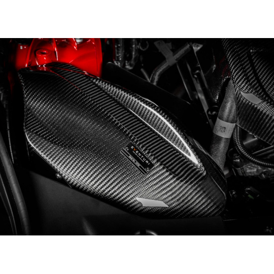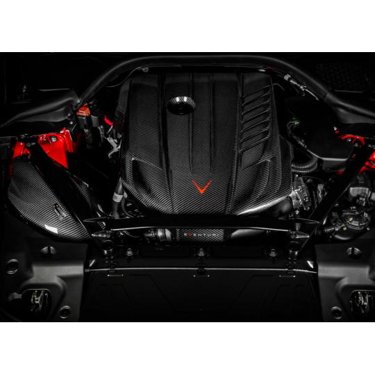 Karbonový airbox Eventuri má v tomto případě dva hlavní úkoly - chránit filtr před zdroji tepla a zásobovat filtr dostatečným množstvím čerstvého vzduchu. Protože je sání umístěno v bezprostřední blízkosti výfukových svodů, je pro výsledný výkon zásadní zamezit průniku tepla do airboxu. Proto byl airbox navržen jako zcela uzavřený a navíc maximálně využívá prostor pod kapotou vozu. I samotná trubka vedoucí do airboxu prochází laserem řezaným těsnicím plátem s gumovým těsněním. Poslední úpravou je pak dodatečný štít směrovaný proti výfukovým svodům. Tento štít je navíc opatřen špičkovou zlatou termoizolací.