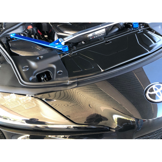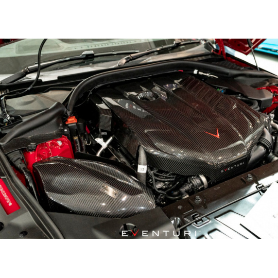 Karbonové sání Eventuri pro vůz Toyota Supra A90 (MK5) bylo vyvinuto tak, aby zásobovalo turbo maximálním možným množstvím vzduchu, proudícím co možná nejméně restriktivním způsobem a zachovávajícím si co nejnižší teplotu nasávaného vzduchu. Vzhledem k tomu, že sání vzduchu je u Toyota Supra umístěno v blízkosti výfukových svodů, je funkčním řešením sportovního sání pouze uzavřený airbox s odstíněním od zdroje tepla. Právě prolínání horkého vzduchu od svodů do sání je hlavní problém originálního airboxu. Dalším je samotný zdroj čerstvého vzduchu, protože Supra je originálně vybavena pouze jedním vstupem vzduchu do airboxu. Karbonové sání Eventuri má proti tomu vstupy dva a pro závodní použití pak nabízí náhradu světlometu, která po odstranění krytu na airboxu znamená další přívod vzduchu. Jako dodatečná ochrana před teplým vzduchem je na straně výfukových svodů airbox opatřen tepelným štítem se zlatou termoizolací.