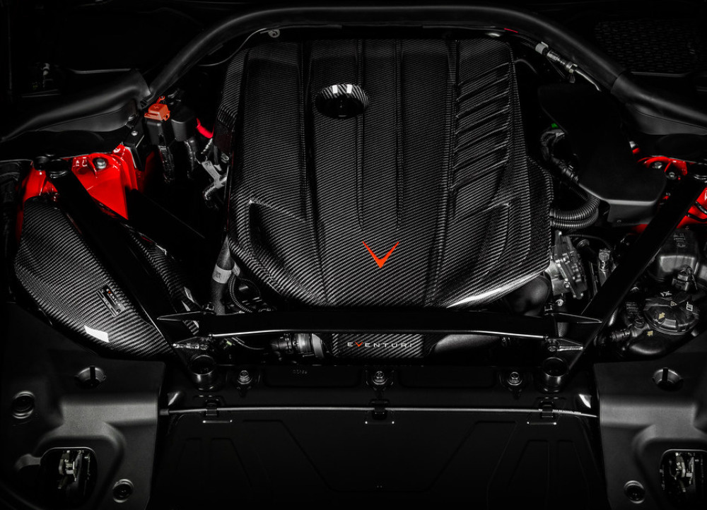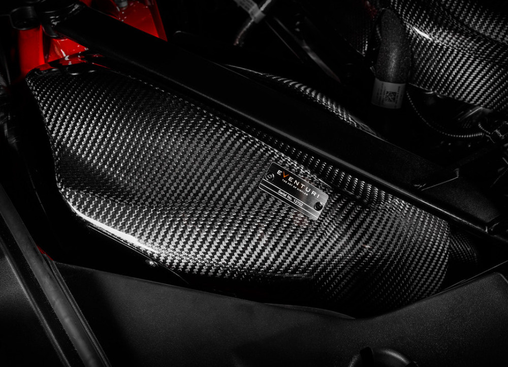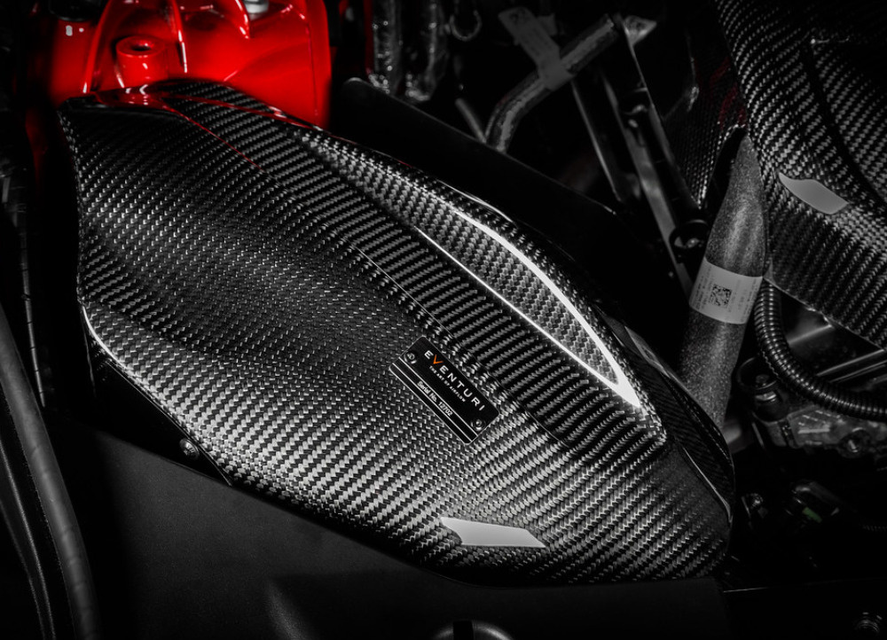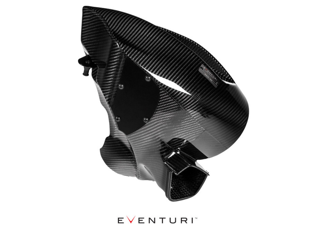 Karbonový airbox Eventuri má v tomto případě dva hlavní úkoly - chránit filtr před zdroji tepla a zásobovat filtr dostatečným množstvím čerstvého vzduchu. Protože je sání umístěno v bezprostřední blízkosti výfukových svodů, je pro výsledný výkon zásadní zamezit průniku tepla do airboxu. Proto byl airbox navržen jako zcela uzavřený a navíc maximálně využívá prostor pod kapotou vozu. I samotná trubka vedoucí do airboxu prochází laserem řezaným těsnicím plátem s gumovým těsněním. Poslední úpravou je pak dodatečný štít směrovaný proti výfukovým svodům. Tento štít je navíc opatřen špičkovou zlatou termoizolací.